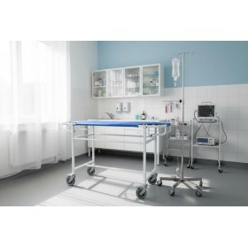 The J-VET 2 MAX E K is a table with electric height adjustment and top tilt adjustment. To its base four casters with locking mechanism are attached. Its top dimensions are 160x65 cm. Mattress, IV pole and bowls are...