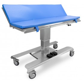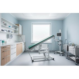The ANURO 2 veterinary tilt table is a model of the veterinary table with electric height adjustment and a tabletop of 130x60 cm. The corners of the table are equipped with bumpers for safe transport of the table.