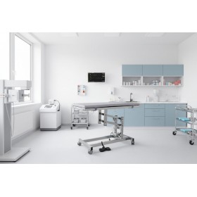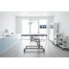 Veterinary Table GOLIAT 2 SLVR is a versatile surgical table. In its lowest position, it is only 45 cm high, making it easy to place larger animals on the tabletop without effort. The table has a hydraulic adjustment...