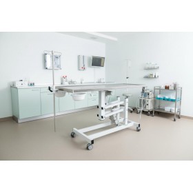 The URSO veterinary table is a table with electric height adjustment. To its base four casters with locking mechanism are attached. Its main feature is the lifting column with permissible load of 200 kg. Mattress, IV...
