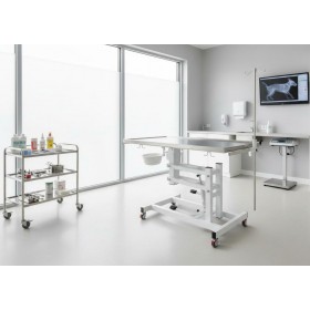 URSO veterinary table is a model of veterinary table with electric height adjustment. Features of the table include a lifting column with a load capacity of 200 kg, 2 drawers located under the table top, and 2 wire...