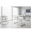 The SNW3 veterinary instrument table is designed for transporting instruments over short distances and for performing procedures in which the instrument table is positioned above the treatment/operating table.