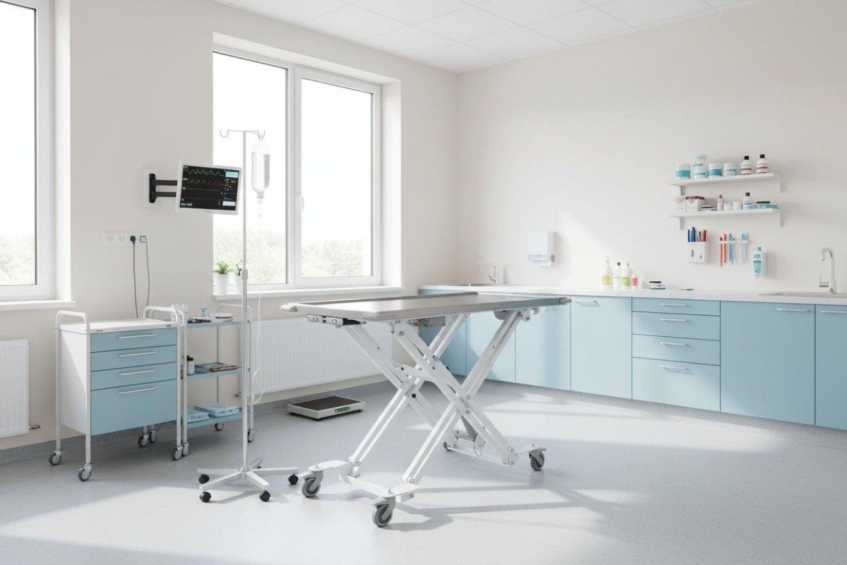 The ANURO 2 veterinary tilt table is a model of the veterinary table with electric height adjustment and a tabletop of 130x60 cm. The corners of the table are equipped with bumpers for safe transport of the table. The height adjustment range of the table is 30-100 cm.